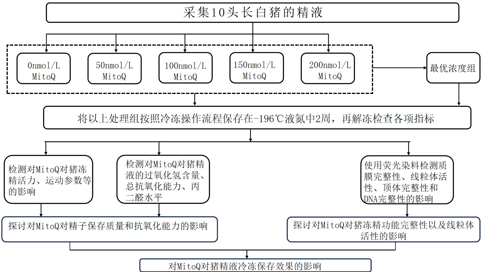 (1)通过本项目的全面系统研究,期望筛选出MitoQ在猪冻精中最佳浓度,通过试验指标的变化规律探讨出MitoQ抗氧化机制,为人工授精技术的完善以及现场生产提供理论依据。