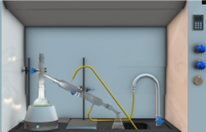 虚拟仿真技术能够模拟真实的实验条件和环境,且不受场地、时空、设备和危险性等因素的影响。切实应用于临床医学教学、动物生产实验模拟教学、化学实验(如图1所示)以及存在一定危险的放射学教育中[6,7]。面对难以理解的抽象物结构,虚拟仿真技术将其的分子结构、空间构象、反应机理具体展现在学生面前,让学生可以更直观的理解学习[8]。虚拟仿真技术不仅对于理论教学有帮助,对于化学实验教学更是帮助巨大,它可以通过模拟验证实验的可行性,节约药品资源与人力资源[9],模拟实验的最理想成效,与真正实验作对比。