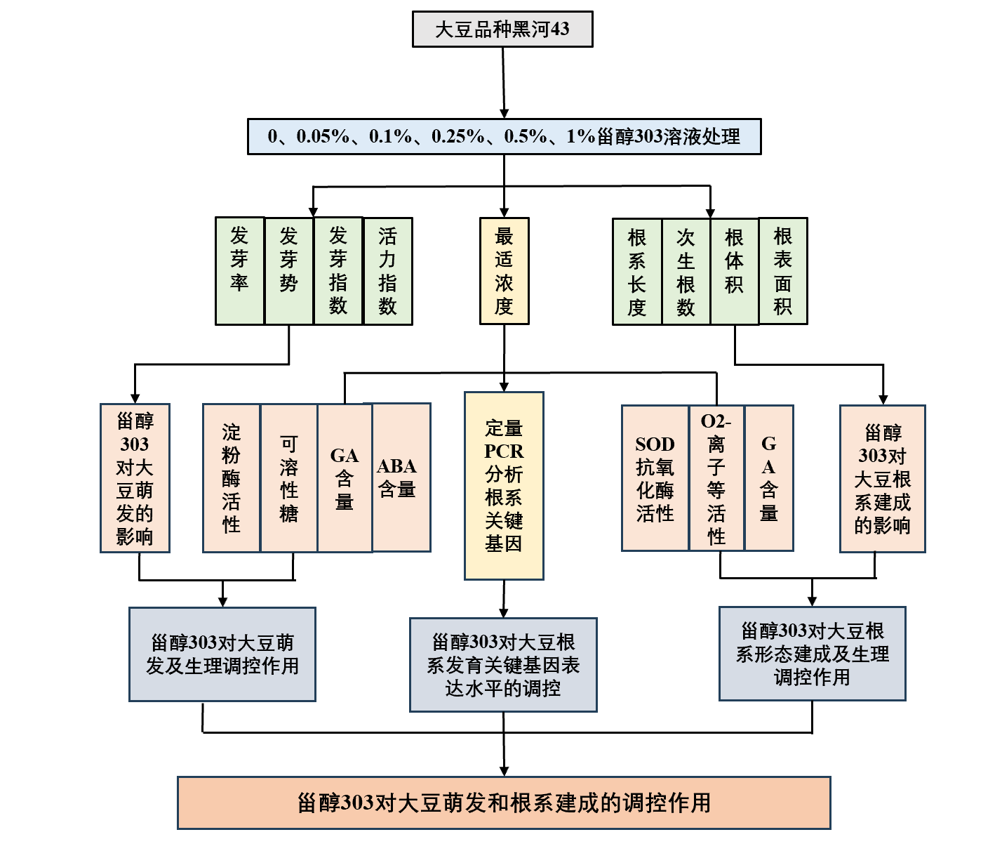 根系具有机械固定、吸收水分和养分的功能,同时可感知土壤理化参数和微生物信息,协调植株整体生长发育。根系结构特征与功能密切相关,并受包括乙烯、生长素、脱落酸、赤霉素、细胞分裂素、茉莉酸和油菜素多种激素调控[16]。大豆根系特征与共生固氮、产量关系密切[17],因此通过植物生长调节剂调控大豆根系表型有望促进养分吸收和生物固氮能力,进而提高产量。